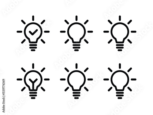 Six Black Lightbulb Icons Ideas Symbols Set vector