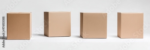 Six empty brown cardboard boxes arranged in a row on a white background, representing packaging, shipping, delivery, storage, and product display.