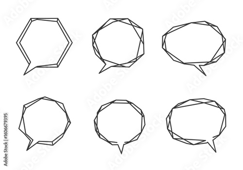 Six geometric chat bubbles with a handdrawn sketched look on a white background