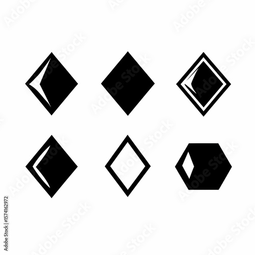 Six geometric shapes; diamond, square, and hexagon icons; white background; graphic design elements