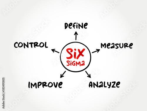 Six Sigma (6σ) - set of techniques and tools for process improvement, mind map process concept for presentations and reports