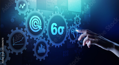 Six sigma DMAIC Industrial process optimisation concept on virtual screen.