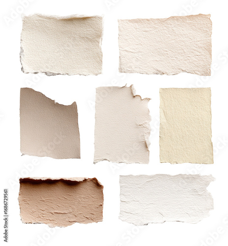 Six textured, ripped paper rectangles in a grid