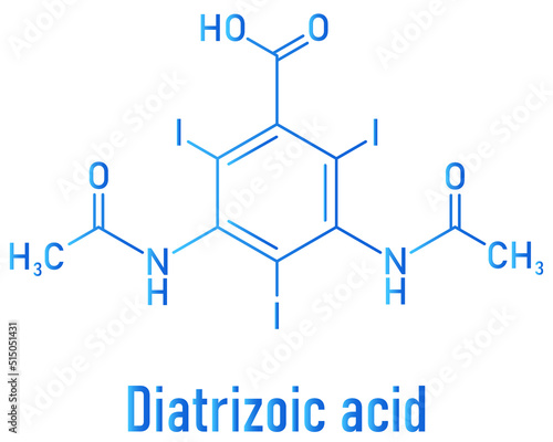 Skeletal formula of Diatrizoic acid contrast agent molecule. Also known as Diatrizoate or Amidotrizoate.
