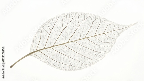 Skeletonized leaf, studio shot, white background, nature texture, design element