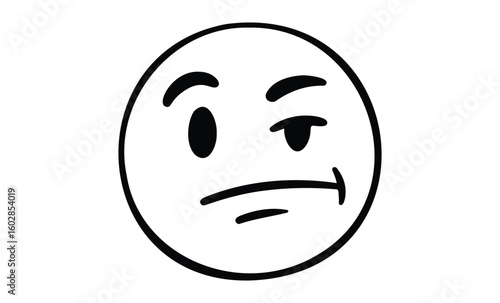 Skeptical expression emoji with raised eyebrow and frown. Vector retro hand drawn illustration.