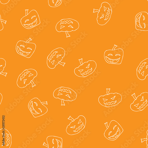Sketch Halloween pumpkin seamless outline. Halloween pumpkin seamless outline in a hand-drawn style. October harvest background. Vector freehand set. Vector
