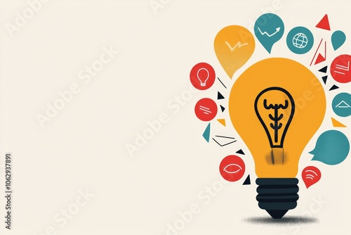 Sketchbook with business ideas, motivational and creative icons, emphasizing imagination, clean background, modern design