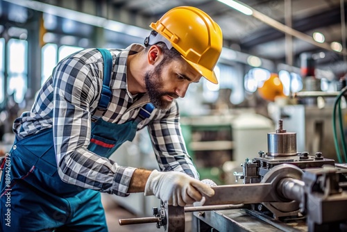 Skilled Mechanic Engineer Concentrating on Machinery Maintenance in overalls is focused on performing precise maintenance work on complex industrial machinery components.