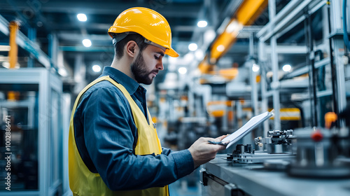 skilled worker inspecting quality in factory setting with focus