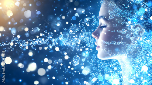Skincare model and Cosmetic Innovation, Blending Organic Patterns, Bioluminescence, and Minimalist 3D Aesthetics.