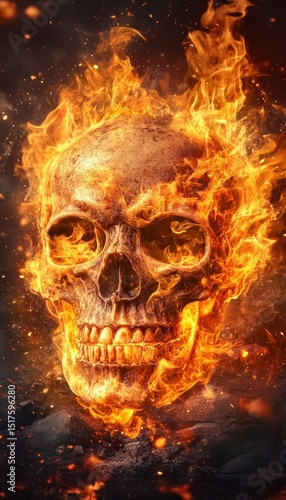 Skull Ablaze A Fiery Spectacle of Macabre Artistry with Gothic Fantasy and Dark Horror Themes