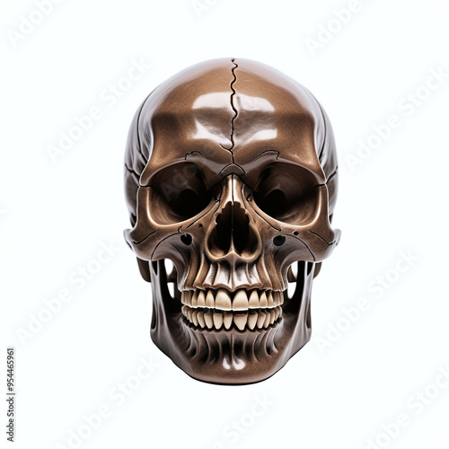 Skull made of clay. Isolated on white background. Front view, Digital illustration.