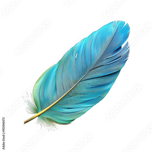 Sky Blue green feather bird quill part of wing isolated on transparent background cutout PNG