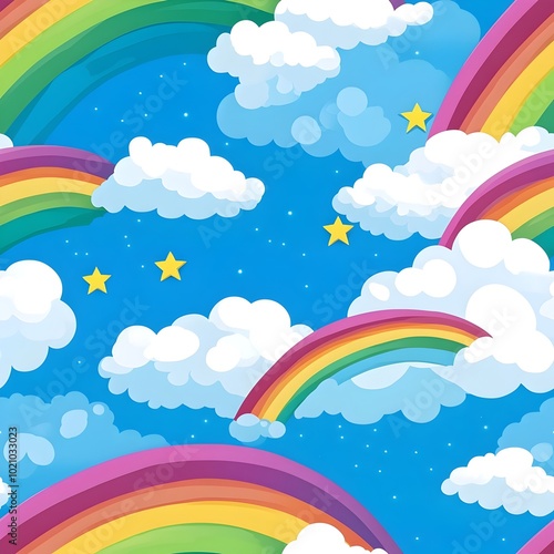 Sky rainbow clounds with seamless pattern