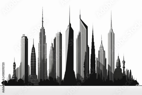 Skyline of skyscrapers drawn on a white background. Generative AI