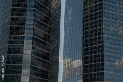 Skyscraper. City architecture. Skyscrapers tower cityscape. Different city center buildings.