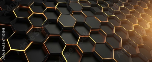Sleek 3D design with black hexagons arranged on a wall. generative AI