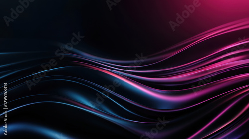 Sleek abstract waves in dark tones with vibrant pink and blue highlights create dynamic and modern background. Perfect for technology or creative themes