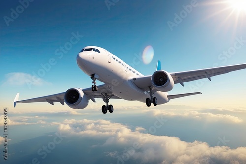 Sleek Airplane in Flight Against Clear Sky for Travel Dreams 3D Visualization