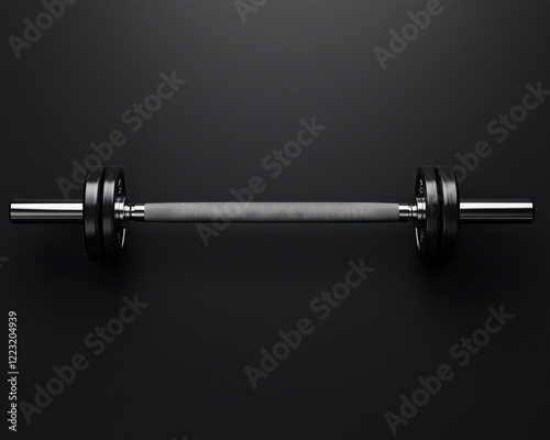 Sleek barbell with black weights on dark background