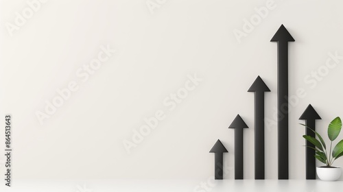 Sleek black arrows ascending on a minimalist light background, conveying a strong message of business growth, progress, and achieving new heights in success