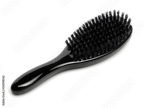 Sleek Black Hairbrush with Sharp Bristles on Crisp White Background