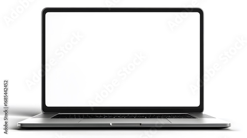 Sleek Black Laptop with Blank Screen on White Background for Professional Presentations