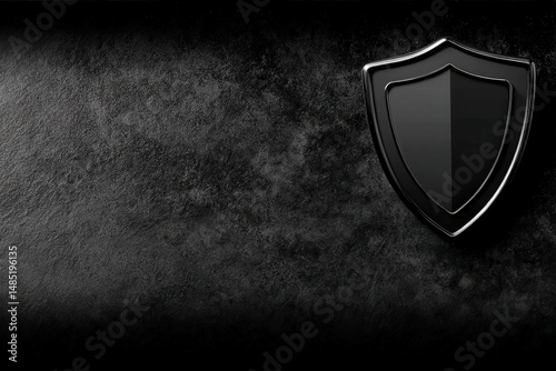 Sleek black shield symbolizing security and protection against digital threats set against a textured dark background emphasizing the importance of cybersecurity for modern technology users