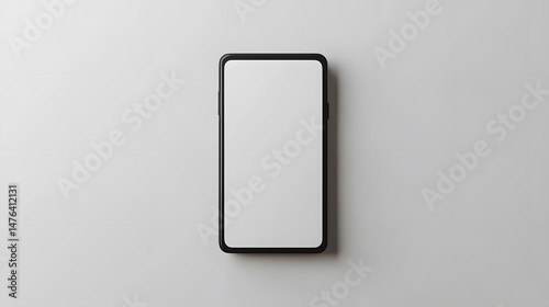 Sleek black smartphone with blank screen lies on smooth gray surface, showcasing modern design