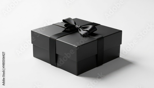 Sleek black square gift box, open & closed, side view White background , shadow, square box