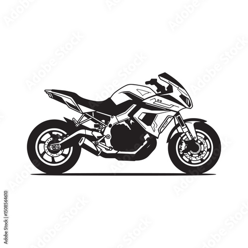 Sleek Cyberpunk Motorcycle Illustration in Black and White Vecto
