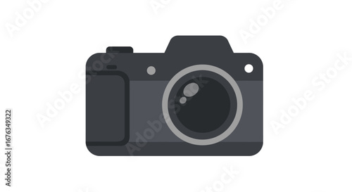 Sleek Dark Gray Digital Camera Icon Illustration.