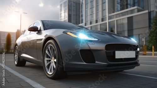 Sleek Electric Vehicle Charger in Modern Parking Area Close-Up Viewpoint Innovative Technology Concept