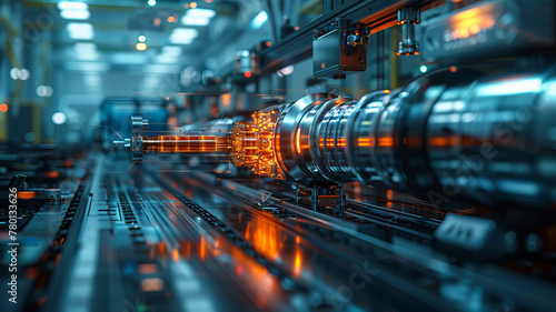 Sleek, hyper-modern design showcasing plastic extrusion injection molding machine on dark mode background.generative ai