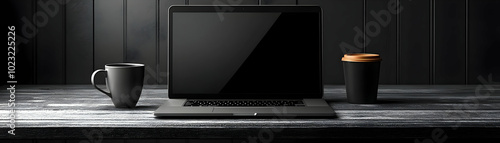Sleek Laptop and Coffee Mug Isolated on White Background - Perfect Vector Image for Productive Home Office Setup