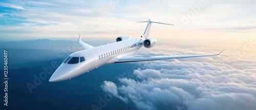 Sleek Luxury Jet Flying Above Fluffy Clouds in a Vibrant Sky During the Daylight Hours
