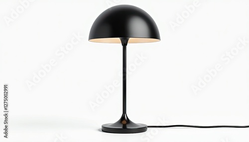 Sleek Matte Black Table Lamp with Glossy Finish on White Background. A black table lamp on a white background.