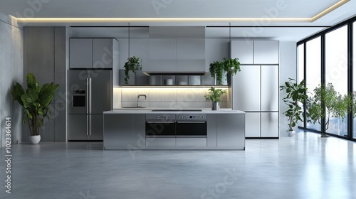 Sleek modern kitchen with stainless steel appliances and minimalist decor. Ideal for home design, real estate, and lifestyle-related topics.