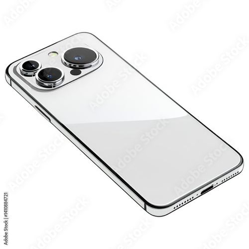 Sleek Modern Smartphone: A pristine white smartphone, its polished glass back gleaming, showcasing its camera lenses, captures the essence of innovation and modern design.