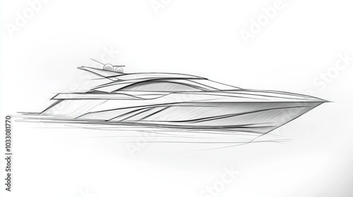 Sleek modern yacht design sketch featuring clean lines and a minimalist aesthetic in a contemporary marine layout