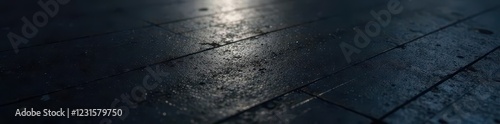 Sleek, polished black metal plane, reflective highlights, chrome, dark surface, smooth surface