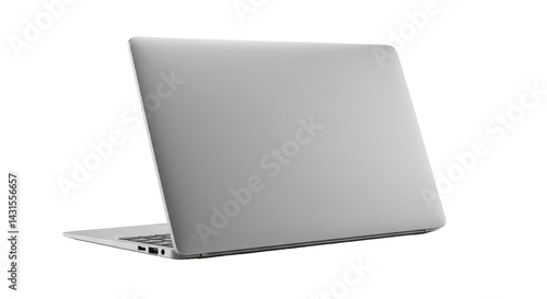 Sleek, silver laptop angled, displaying clean design on a solid black background