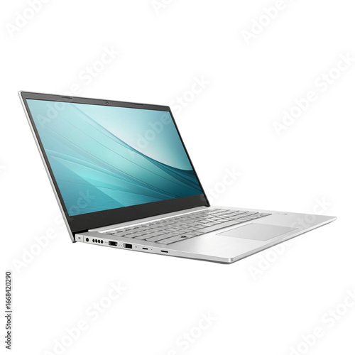 Sleek silver laptop with vibrant display, perfect for modern business, creative work, and online communication, ideal for professional use, featuring a clean design and technological innovation