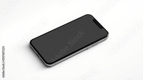 Sleek Smartphone Mockup: A modern smartphone with a black screen lies in a minimalist setting, perfect for showcasing app designs, mobile interfaces, or branding.
