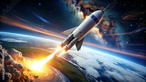 Sleek space rocket in orbit around Earth as part of a high-tech global space program exploration, rocket, space, orbit