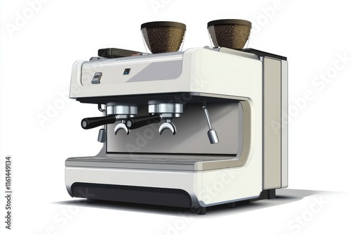 Sleek white espresso machine with dual grinders, designed for brewing rich coffee with precision.