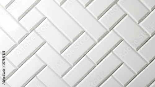 Sleek white herringbone tiles create modern and elegant pattern, perfect for contemporary interiors and stylish renovations