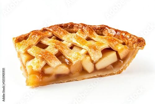 Slice of delicious apple pie with a golden-brown lattice crust.