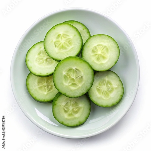 Sliced Cucumbers in a White Plate - A close-up of neatly sliced cucumbers arranged on a white plate, perfect for healthy snacks or salads.